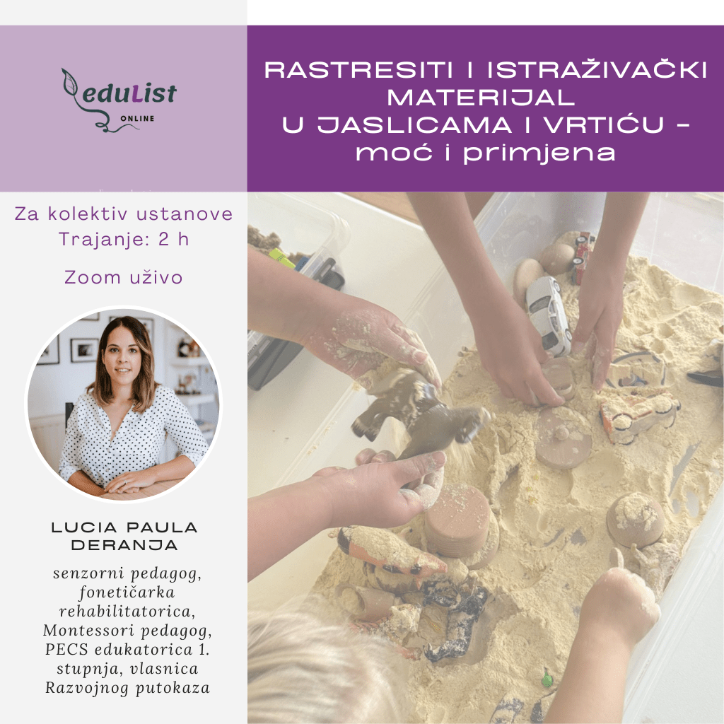 kotizacija na upit - za kolektiv ustanove Edukacija za kolektiv: Rastresiti i istraživački materijal u jaslicama i vrtiću – moć i primjena u radu s djecom See more
